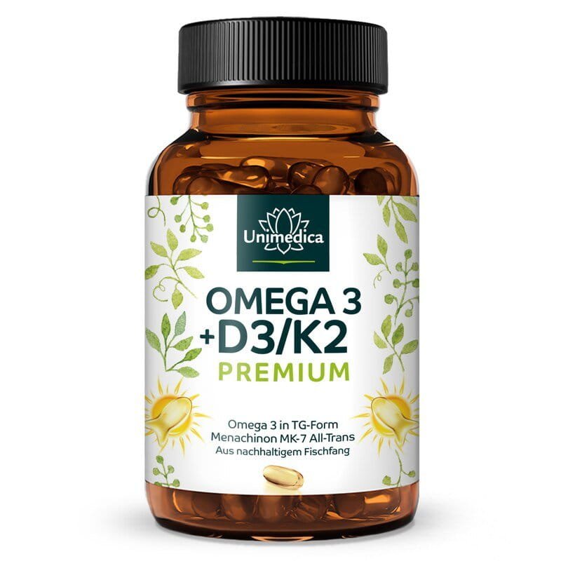 أوميغا 3/ فيتامين د3 / ك2.Vitamin D3 + K2 MK7 All-trans + Omega 3 – Premium – 90 Softgelkapseln