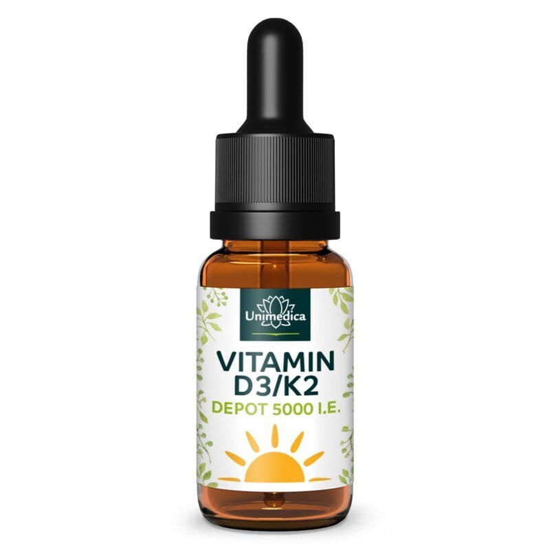 فيتامين د3 / ك2.Vitamin D3 / K2 5000 I.E. – DEPOT – K2VITAL® – 125 µg D3 und 100 µg K2 pro 5-Tagesdosis (1 Tropfen) – 10 ml