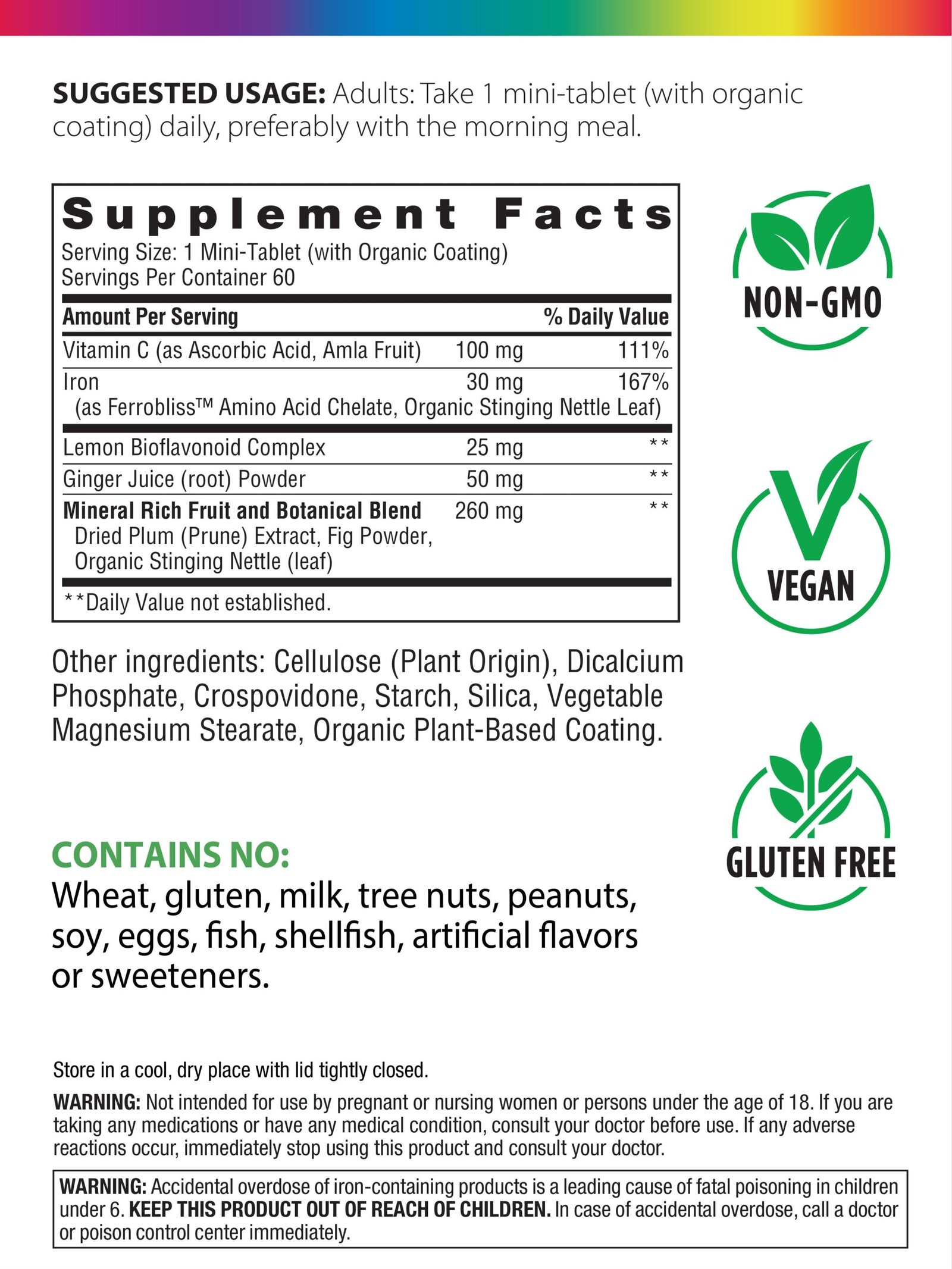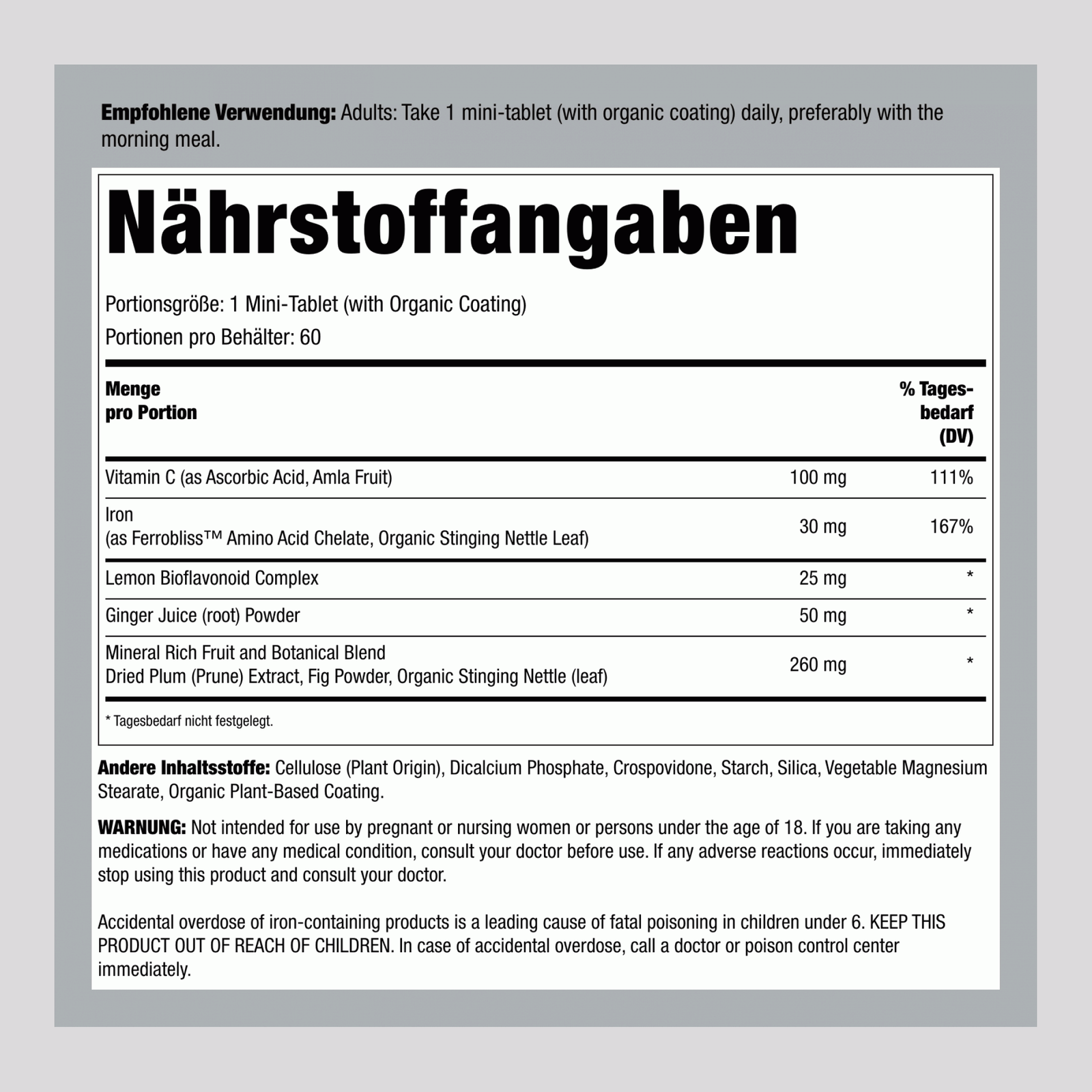 أقراص حديد صغيرة كاملة + مغذيات غذائية حقيقية ، 60 قرصا نباتيا صغيرا. Komplette Eisen-Mini-Tabletten/Iron