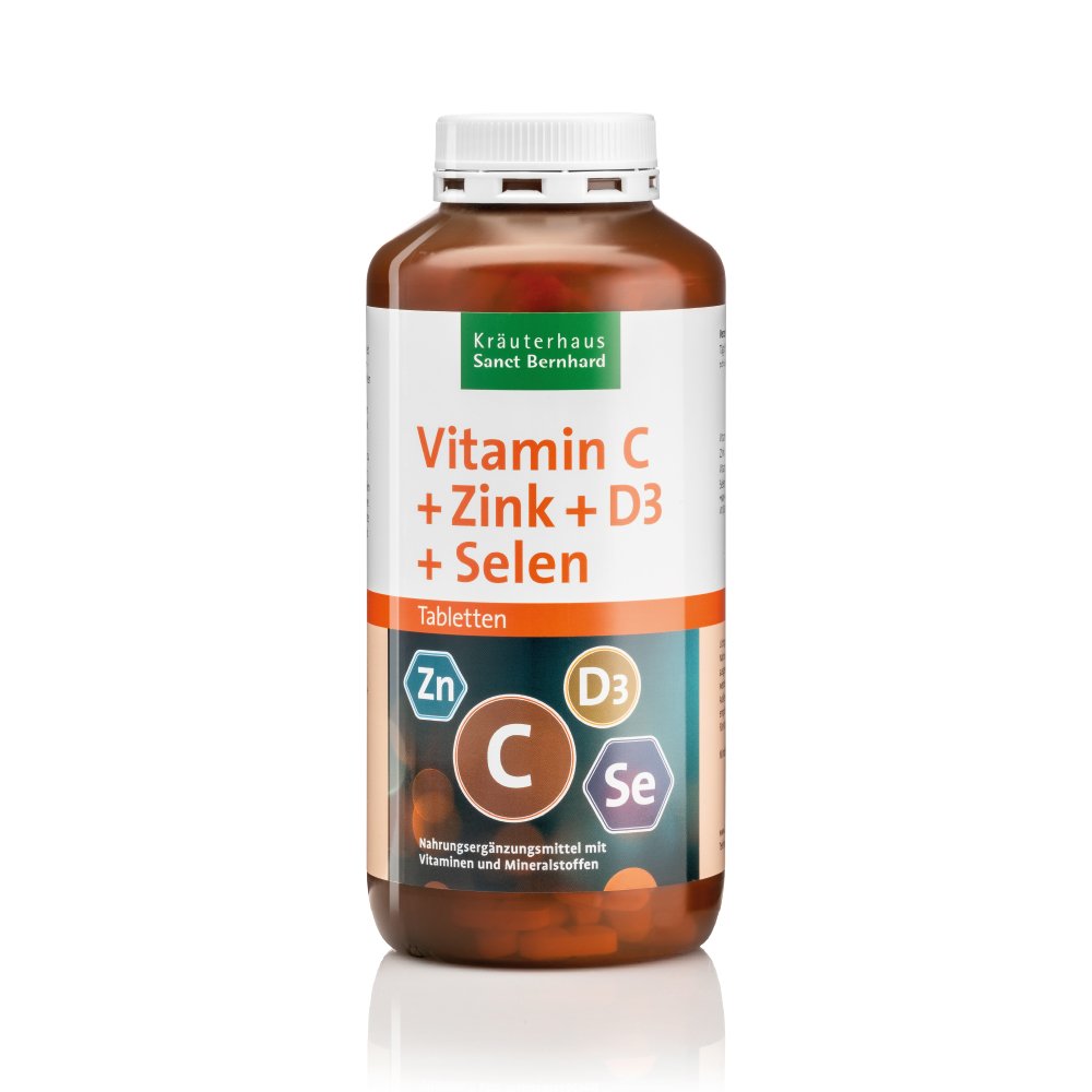 أقراص فيتامين سي + زنك + د 3 + سيلينيوم. Vitamin C+Zink+D3+ Selen-Tabletten