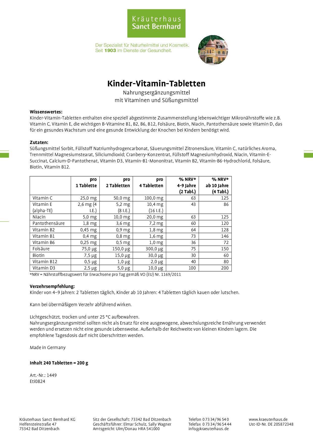 أقراص فيتامين للأطفال. Kinder-Vitamin-Tabletten