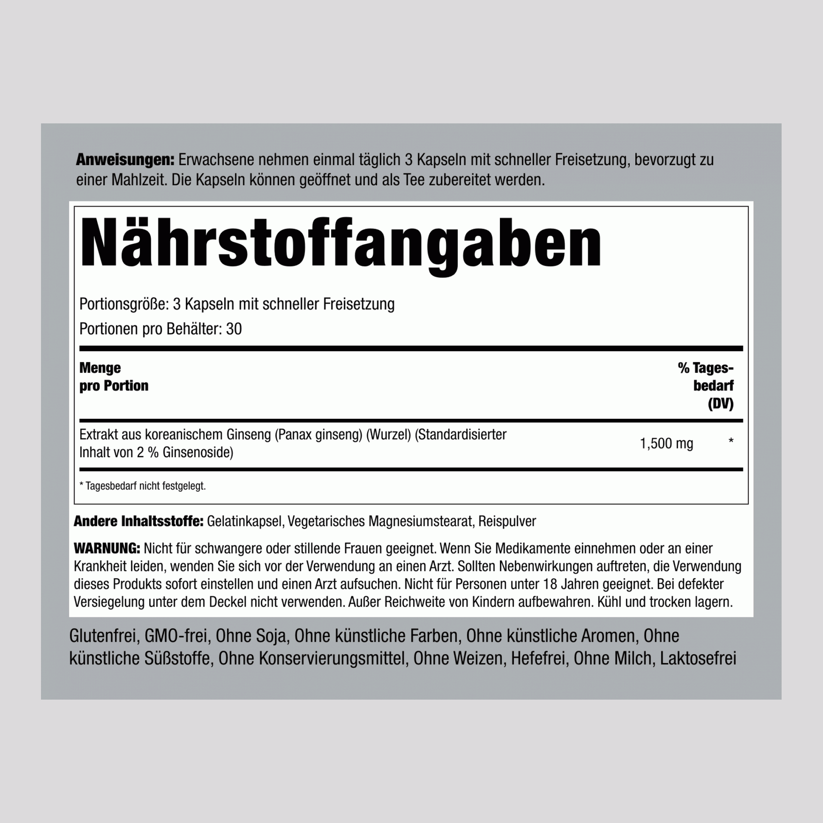 الجينسنغ الكوري (باناكس الجينسنغ) 1500 مجم.Koreanischer Ginseng (Panax-Ginseng) 1500 mg