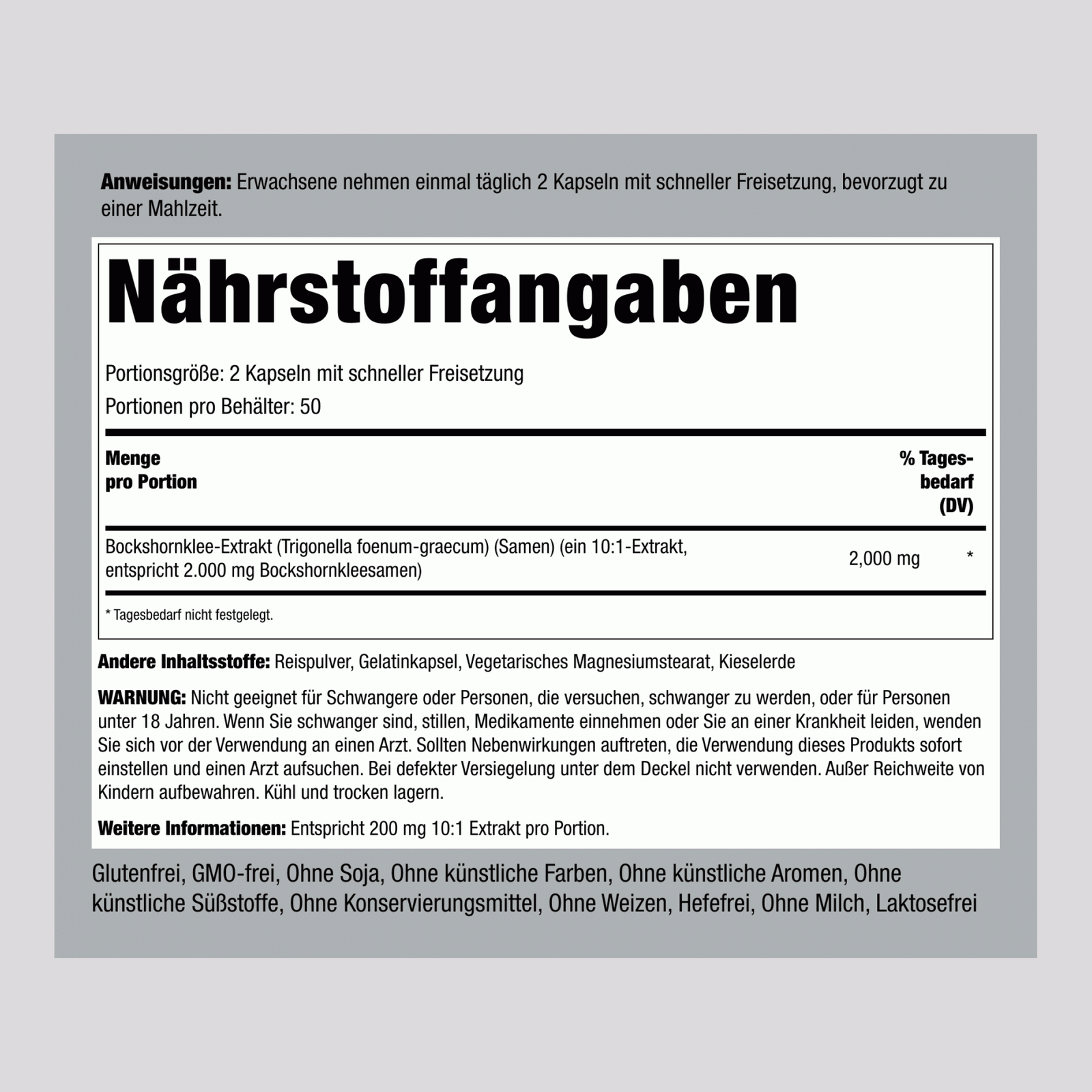 الحلبة 2000 مجم (لكل وجبة) 100 كبسولة سريعة الإطلاق