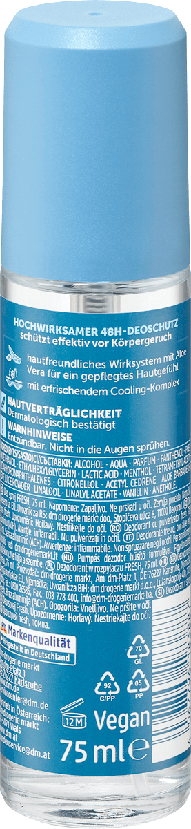 يمنح مزيل العرق Atomizer Fresh من Balea MEN شعورًا لطيفًا بالانتعاش لمدة 48 ساعة. بدون الألومنيوم (ACH)، فإنه يوفر حماية فعالة للغاية لمزيل العرق وبالتالي يحمي بشكل فعال من رائحة الجسم. مع مركب تبريد منعش ونظام نشط مع الصبار، فإنه يضمن شعورًا جيدًا بالبشرة. مثالية للنضارة والعناية طويلة الأمد. وصفة خالية من المواد البلاستيكية الدقيقة والبوليمرات الاصطناعية البحتة القابلة للذوبان في الماء.