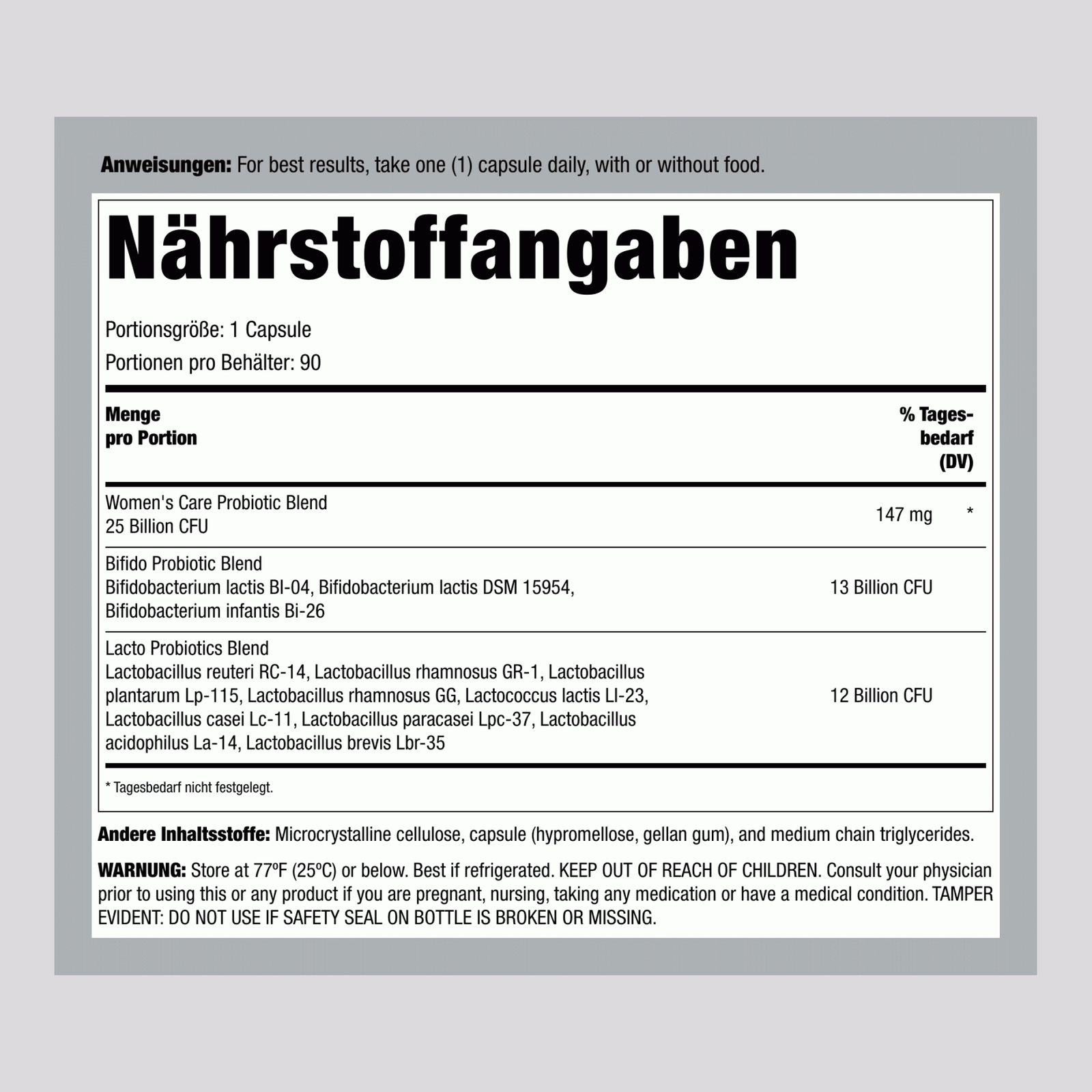 بروبيوتيك النسائي 25 مليار وحدة، 90 كبسولة نباتية.Frauen Probiotikum 25 Milliarden KBE, 90 vegetarische Kapseln