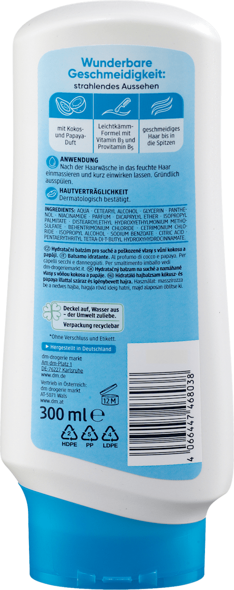 يغذي بلسم الشعر من باليا الشعر بشكل مكثف ويمنحه شعورا ناعما وناعما بالشعر. كما يمنح البلسم الشعر رائحة منعشة من جوز الهند والبابايا ويمنحه فيتامين ب 3 وبروفيتامين ب 5. تمنح التركيبة النباتية الشعر لمعانا صحيا وصولا إلى الأطراف.