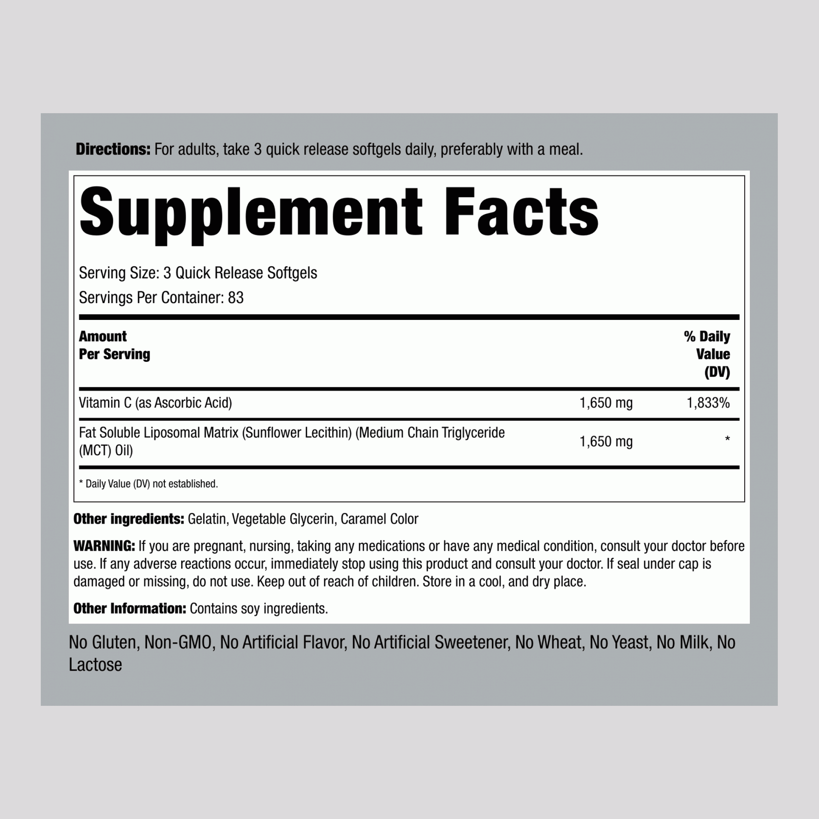 مركب فيتامين سي الشحمي ، 1650 مجم (لكل وجبة) ، 250 كبسولة .Liposomales Vitamin C Komplex, 1650 mg