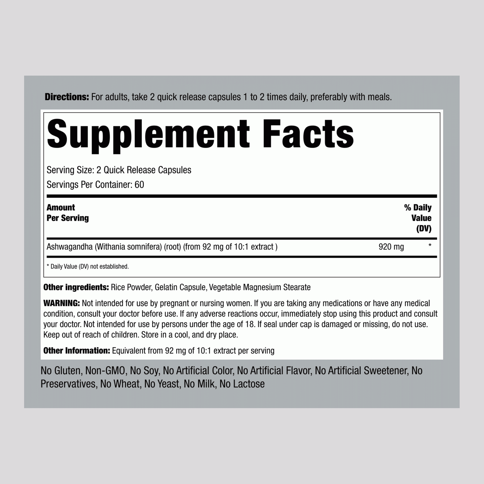 جذر اشواغاندا 920 ملغ (كل وجبة), 120 كبسولات الإفراج السريع. Ashwagandha Root , 920 mg