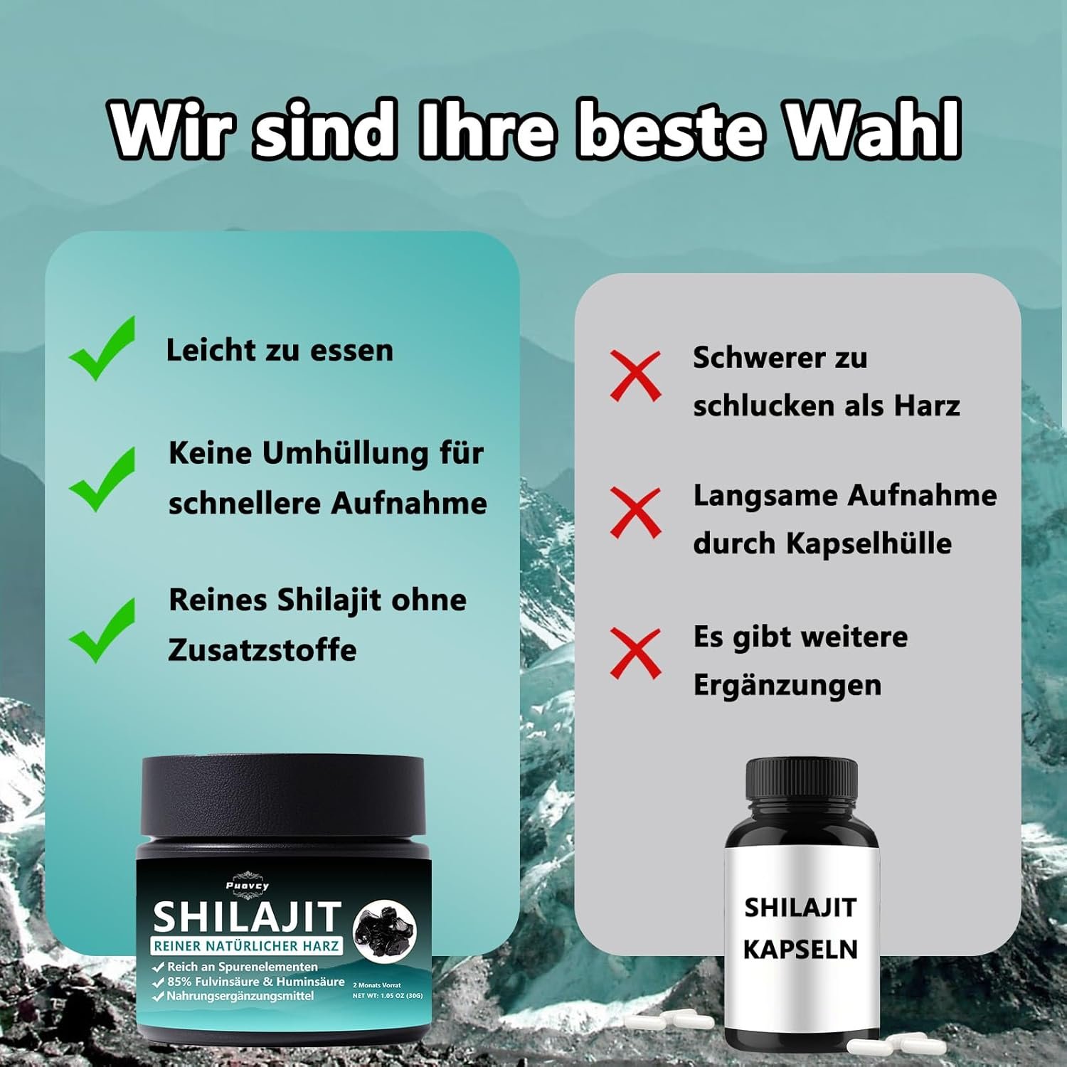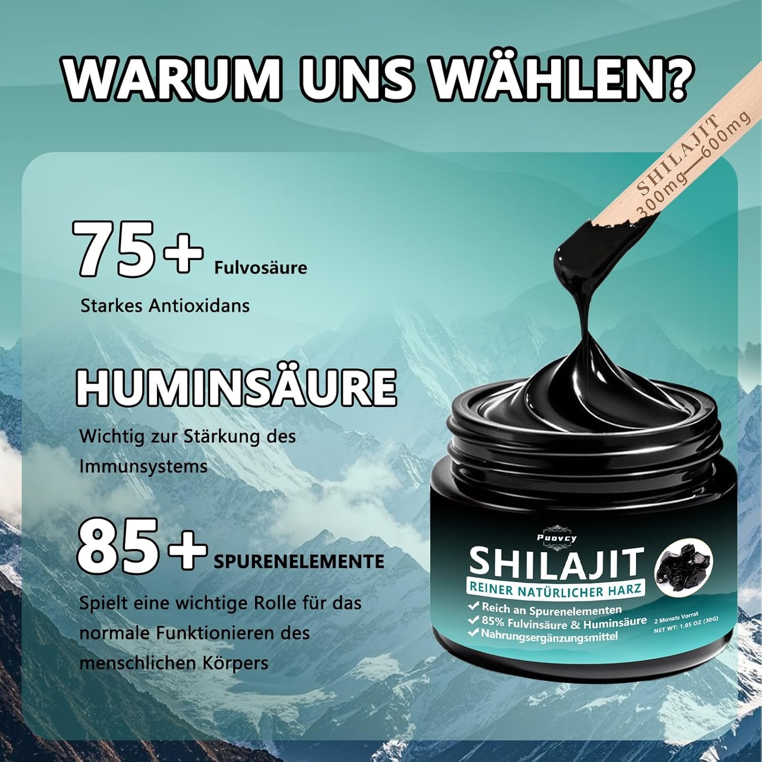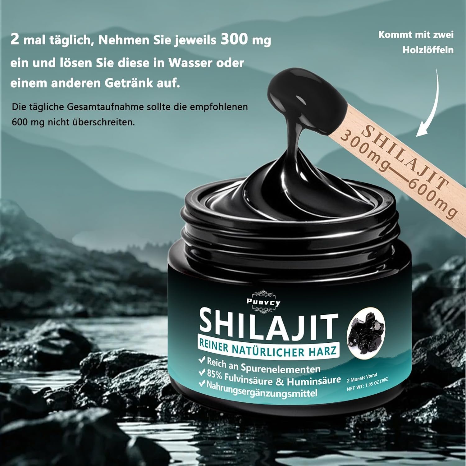 شيلّاچيت بريميوم – 85٪ حمض الفولفيك والمعادن الطبيعية، شيلّاچيت أصلي من الهيمالايا بتركيز عالٍ، جودة ذهبية 100٪، نباتي، خالٍ من الإضافات، 30 جرام.Shilajit