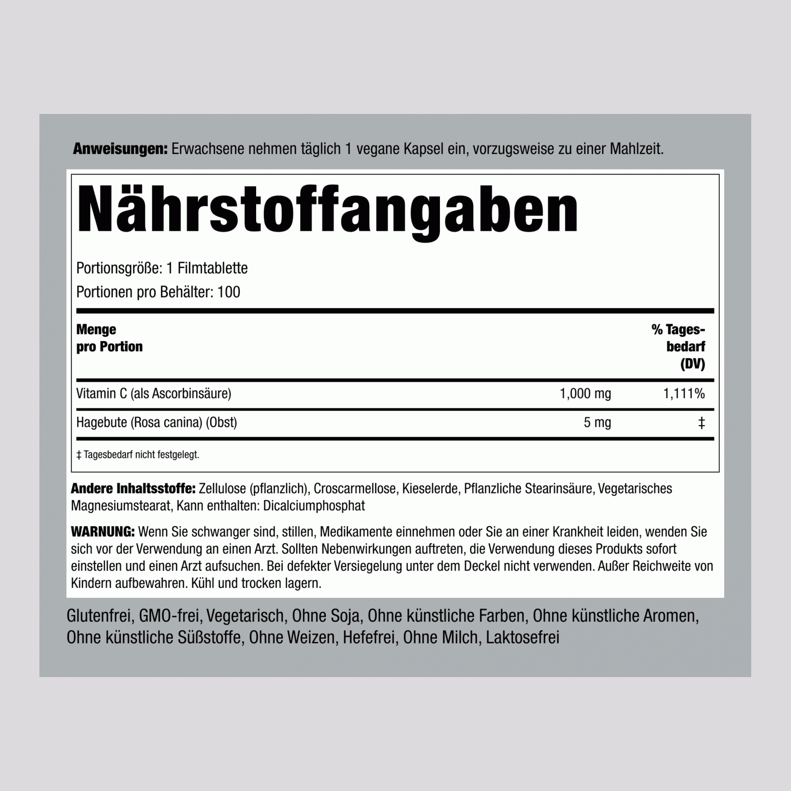 فيتامين سي 1000 مجم مع الوركين الوردية، 100 قرص. 1000 Vitamin c