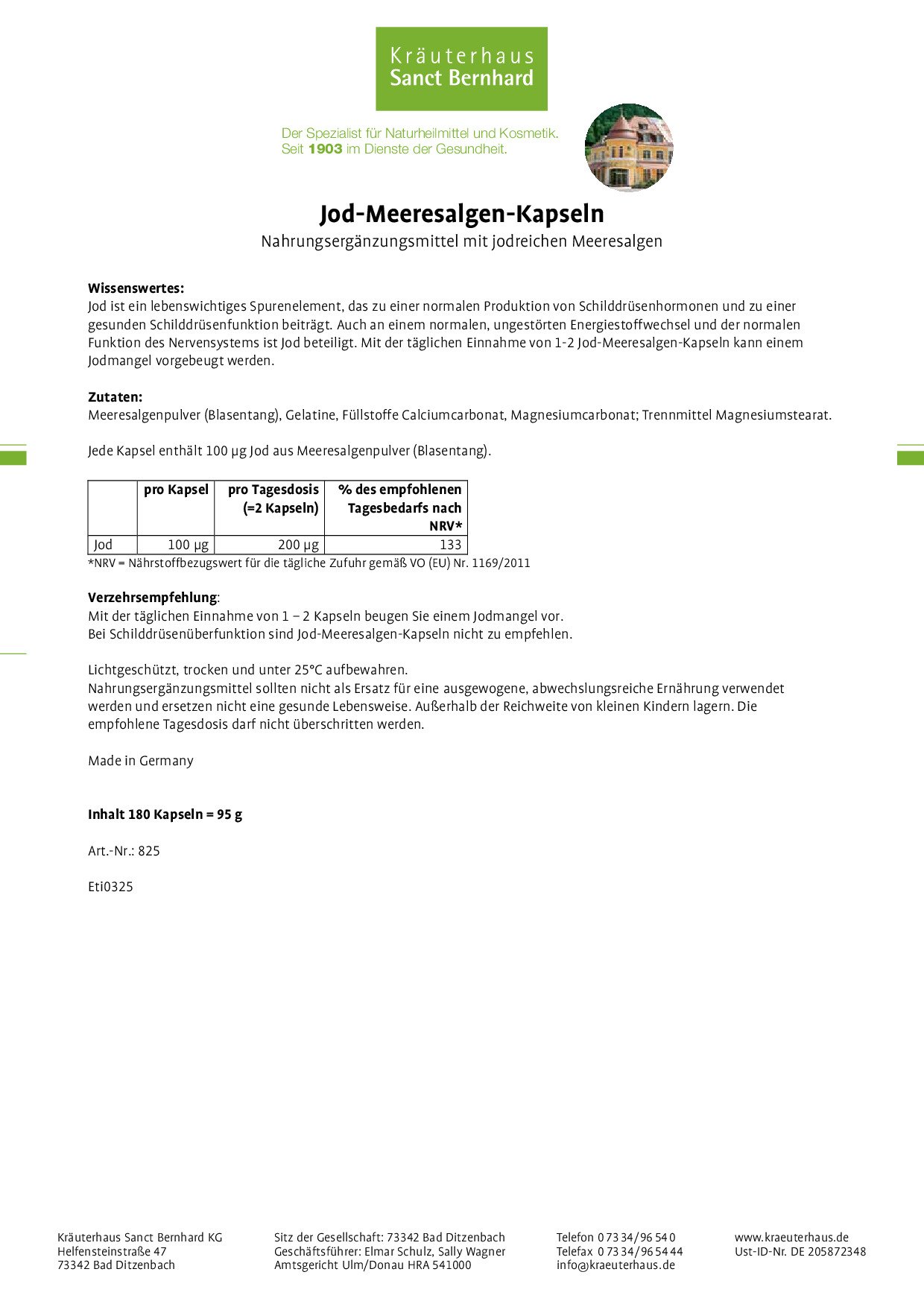- كبسولات اليود والأعشاب البحرية هي مكمل غذائي مع الأعشاب البحرية (100 ميكروغرام من اليود / كبسولة)