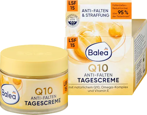 مع Q10 الطبيعي، مجمع أوميغا، فيتامين E وعامل حماية من الشمس 15. تم تأكيد التوافق مع الجلد من قبل أطباء الجلد. تركيبة بدون ميكروبلاستيك وبدون بوليمرات اصطناعية قابلة للذوبان في الماء. كريم Balea Q10 لمكافحة التجاعيد غني بالأحماض الدهنية الأساسية ويعزز مقاومة الجلد. Q10 هو مزود طاقة فعال للخلايا. يساهم بنشاط في تجديد الجلد. Balea Q10 يخفف التجاعيد الأولى وعمق التجاعيد (تم تأكيده في الدراسات). فيتامين E يحمي الجلد من الجذور الحرة. عامل الحماية من الشمس 15 والحماية من الأشعة فوق البنفسجية A تحمي الجلد من شيخوخة الجلد المبكرة الناتجة عن الضوء.