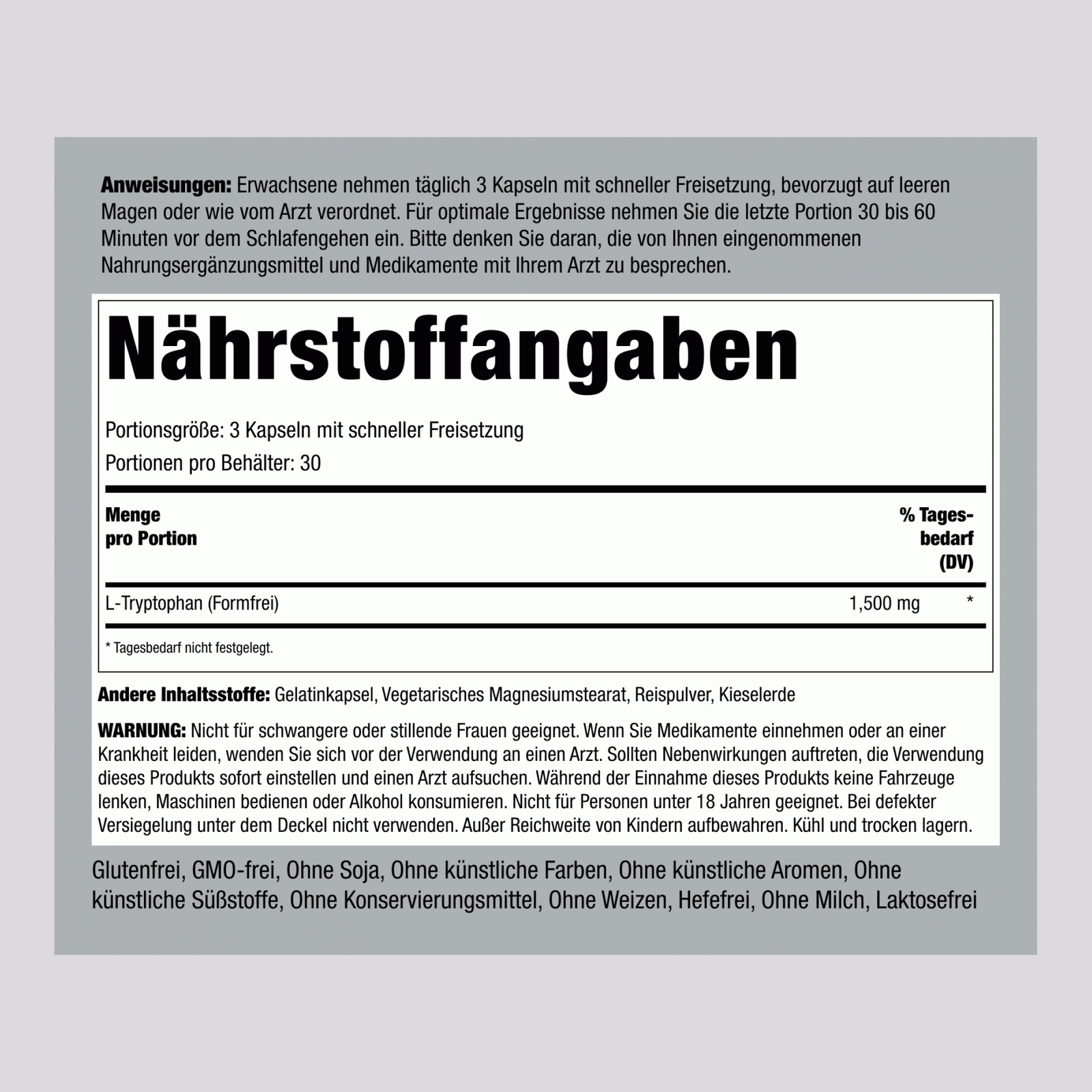 ل تريبتوفان 1500 ملغ (كل وجبة) 90 كبسولات الإفراج السريع.L-Tryptophan 1500 mg