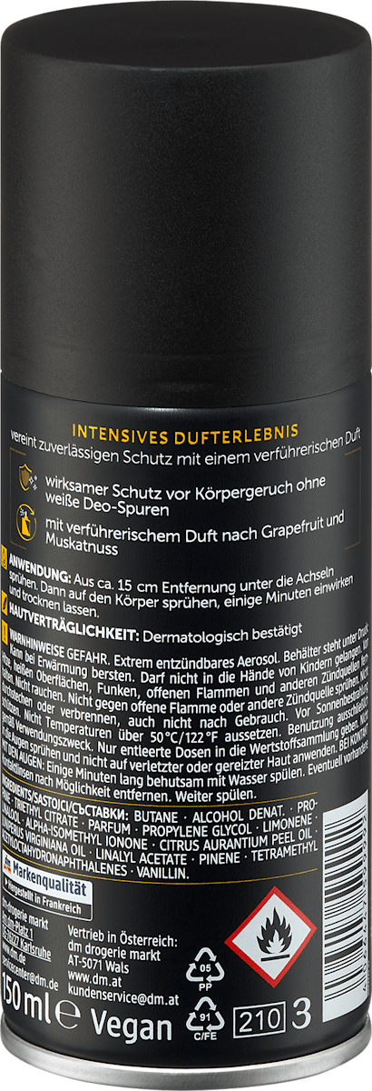 يوفر مزيل العرق ورذاذ الجسم Balea MEN Golden Intense تجربة عطرية لا تقاوم برائحة حارة ومغرية. يوفر حماية مزيل العرق لمدة 24 ساعة من رائحة الجسم ولا يترك أي أثر لمزيل العرق الأبيض. وصفة خالية من المواد البلاستيكية الدقيقة والبوليمرات الاصطناعية البحتة القابلة للذوبان في الماء.