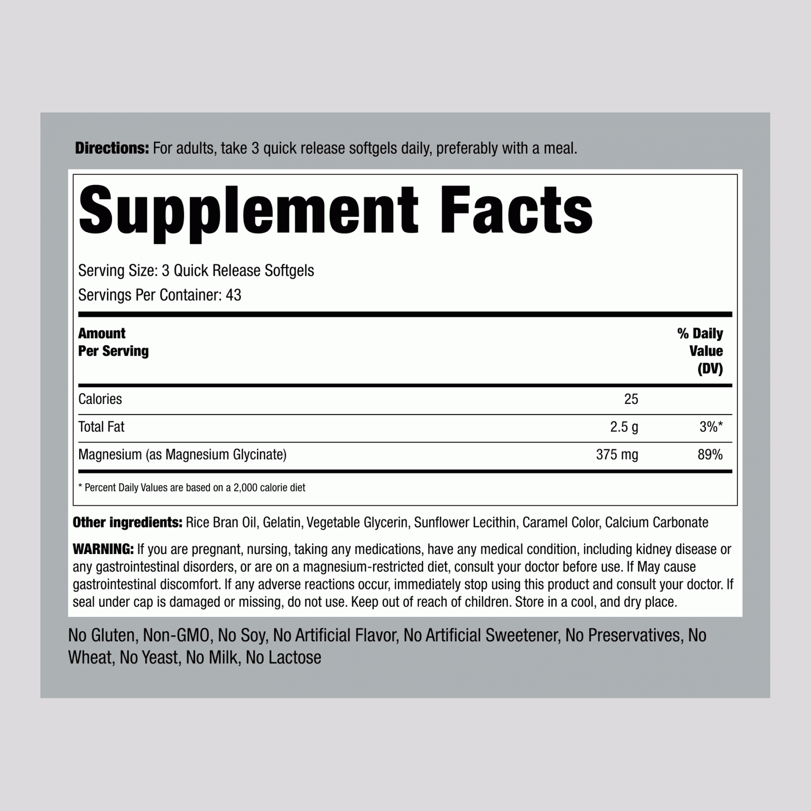 غليسينات المغنيسيوم هو شكل شديد الامتصاص من المغنيسيوم، وهو معدن أساسي يحتاجه الجسم ولكنه لا يستطيع إنتاجه بنفسه. يمكن الحصول على المغنيسيوم من خلال الأطعمة مثل الحبوب الكاملة والخضروات الورقية، لكن الكثيرين يلجأون إلى مكمل عالي الجودة لتلبية احتياجاتهم اليومية. كل حصة من تركيبة غليسينات المغنيسيوم المتميزة لدينا توفر 375 ملغ من المغنيسيوم (غليسينات المغنيسيوم) بسهولة أقراص هلامية سريعة التحرر.