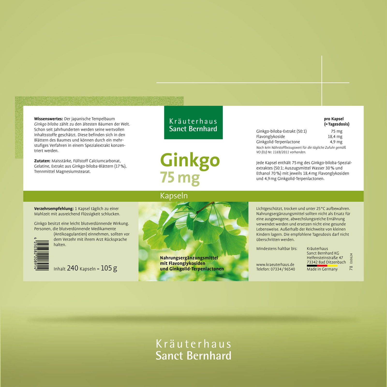 240 كبسولة الجنكة 75 مجم.Ginkgo von Kräuterhaus