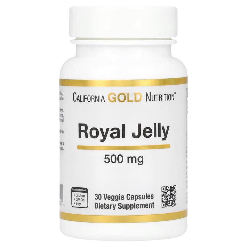 يحتوي غذاء ملكات النحل من California Gold Nutrition على غذاء ملكات النحل المجفف بالتجميد بنسبة 3: 1 في كبسولات نباتية. هذا يعادل 1,500 مجم من غذاء ملكات النحل الطازج ويحتوي على 6٪ على الأقل 10-HDA. عندما تؤخذ وفقا للتوجيهات ، تستمر الكبسولات لمدة 4 أشهر.
